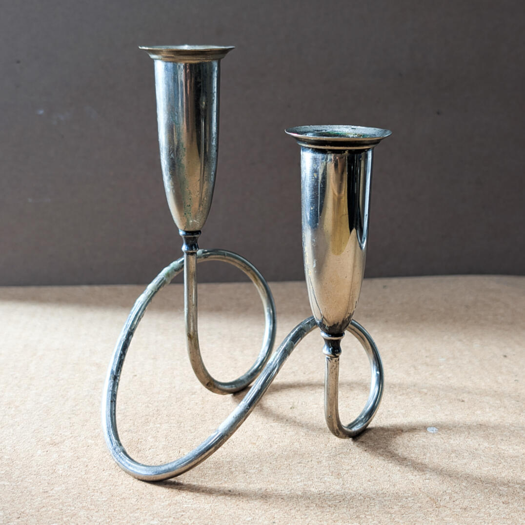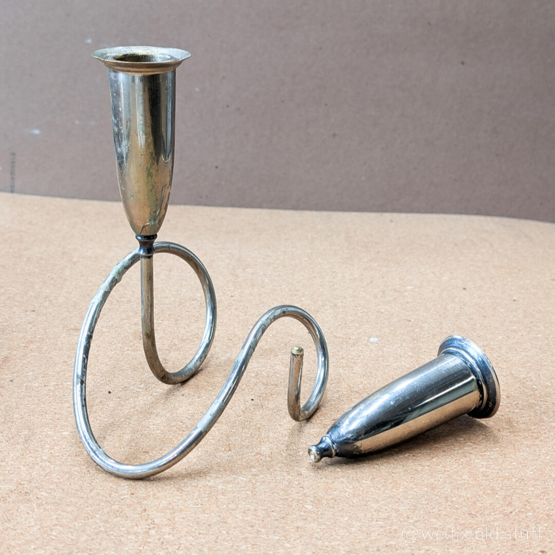 Restoration of a silver-plated candlestick via new mechanical connection.